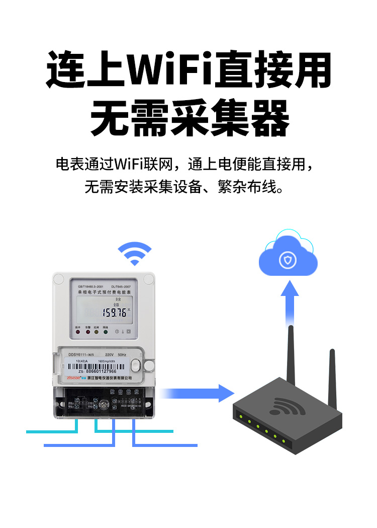 這種抄表方式在青年公寓,白領(lǐng)公寓,酒店式公寓采用比較多,這種方式直接聯(lián)上公寓里的wifi上遠(yuǎn)抄服務(wù)器,再通過電腦診斷或手機(jī)app就能直接使用,這種智能電表使用量不大的情況下,用戶可自行采購安裝,WiFi電表安裝簡單方便,圖如下: