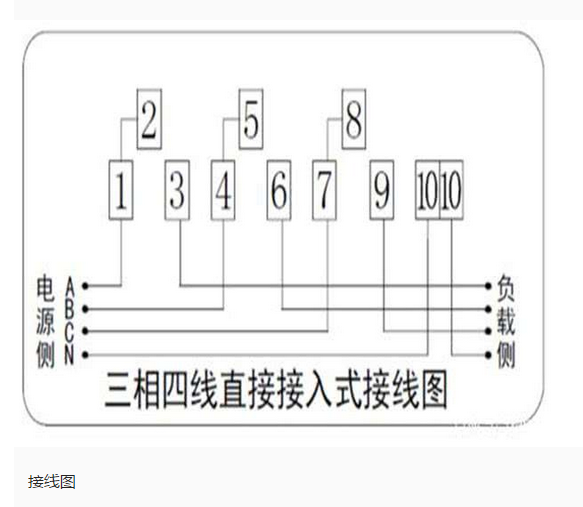 三相預(yù)付費(fèi)電表直接式的接線比較簡(jiǎn)單,編號(hào)從1到10,有的朋友只看到底部的7個(gè)接線柱,其實(shí)還有2、5、8三個(gè)接線柱,只不過(guò)這三個(gè)接線柱和147用連接片短接了,所以不需要再接線。這種直接式的三相四線電表的接線順序是:147接三相電源的進(jìn)線,369接出線,最后的10接進(jìn)出的零線。