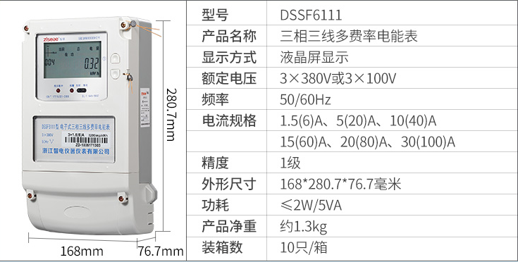 DTSF6111三相四線 DSSF6111三相三線電子式多費率電能表(尖峰平谷電表)是我公司開發(fā)的,具有分時計量用戶所用電能功能,并可實現(xiàn)多種用電費率計費和集中抄表功能的電能計量電能表,該表技術性能符合GB/T17215.321-2008《1級和2級電子式交流有功電度表》和GB/T15284-2002《復費率(分時)電度表》國家標準的要求,適用于計量額定頻率為50Hz或60Hz三相交流有功電能。