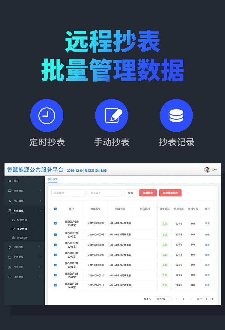 本公司DDSY6111\DDZY6111遠(yuǎn)程智能電表與本公司遠(yuǎn)程抄表系統(tǒng)和手機(jī)APP配套使用,遠(yuǎn)程抄表管理系統(tǒng)具有實(shí)時(shí)抄表、定時(shí)抄表外,還提供了設(shè)備管理功能,如告警、余額短信通知、遠(yuǎn)程充值、手機(jī)抄表、手機(jī)查詢、手機(jī)充值、預(yù)付費(fèi)、后付費(fèi)、自助充值機(jī)充值、遠(yuǎn)程拉合閘、各種查詢報(bào)表、統(tǒng)計(jì)報(bào)表下載等功能。